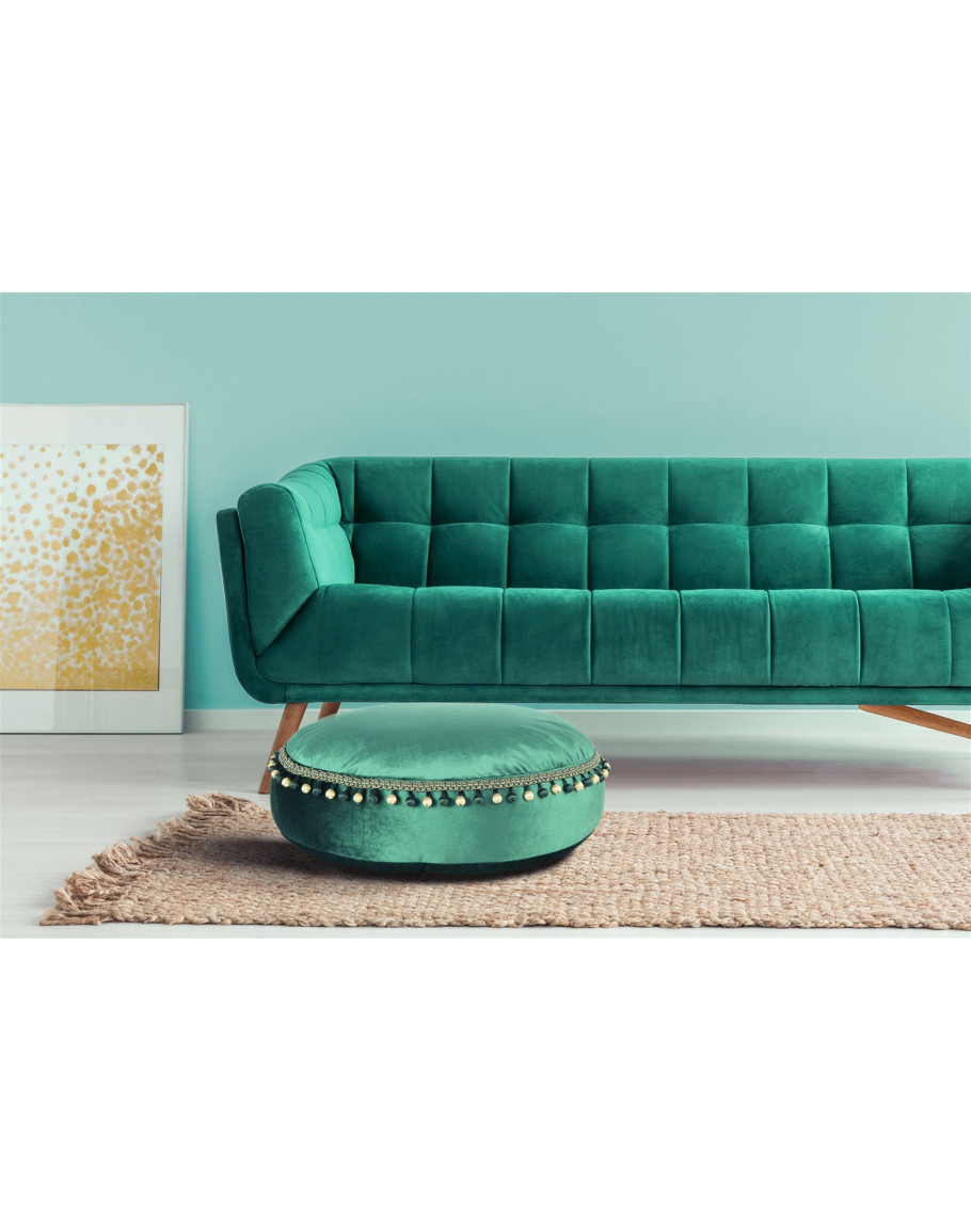 Mit dieser orientalisch angehauchten modernen Sitzgelegenheit peppen Sie jeden Wohnraum gekonnt auf. Das orientalische Design zeichnet sich nicht nur durch die samtige Oberfläche des Hockers, sondern auch durch die stilvolle Pompom-Umrandung aus. Rundum – der Hocker ist ein absoluter Hingucker.