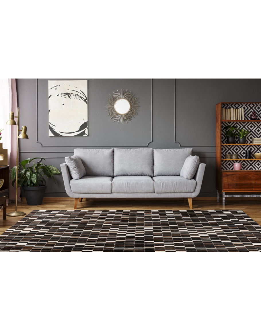Mit seiner charmanten Erscheinung wertet dieser Teppich Innenräume im Handumdrehen auf. Die zusammen genähten Lederstücke sorgen für eine einzigartige Lederoptik und fügen sich so zu einem Unikat zusammen. Das entstehende Gesamtbild hat Charakter dank der unterschiedlichen Nuancen des Materials. Stilvoll und unaufdringlich unterstreicht diese Einmaligkeit eines jeden Stückes die Individualität des Besitzers. Die angewandte Kunst hat bereits seit der Antike bestand und tritt nun in modernen Gewandt erneut in Erscheinung, um zu begeistern.