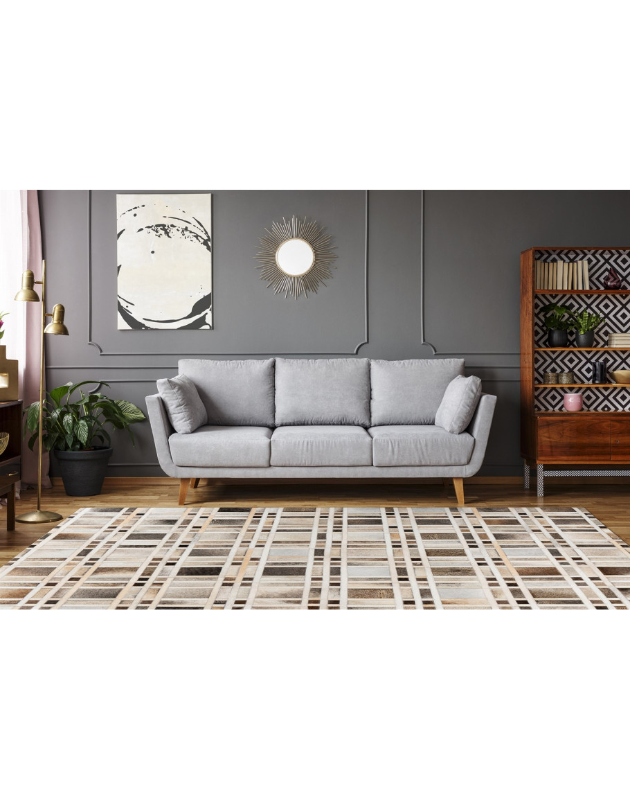 Mit seiner charmanten Erscheinung wertet dieser Teppich Innenräume im Handumdrehen auf. Die zusammen genähten Lederstücke sorgen für eine einzigartige Lederoptik und fügen sich so zu einem Unikat zusammen. Das entstehende Gesamtbild hat Charakter dank der unterschiedlichen Nuancen des Materials. Stilvoll und unaufdringlich unterstreicht diese Einmaligkeit eines jeden Stückes die Individualität des Besitzers. Die angewandte Kunst hat bereits seit der Antike bestand und tritt nun in modernen Gewandt erneut in Erscheinung, um zu begeistern.