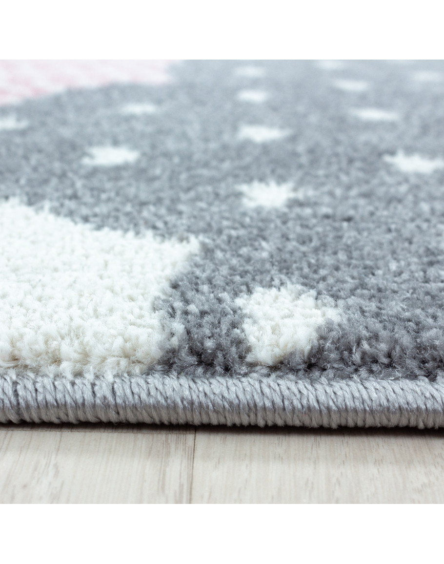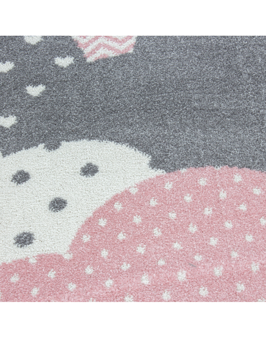 Technische Daten: 100% PP.Friese, Florhöhe: 10 mm, 240.000 Points, 2200 gr (±%5)M2, Rücken aus Jute Material: Polypropylen Farbe: Pink Rücken: Jute Teppich für Raum: Teppich für Kinderzimmer